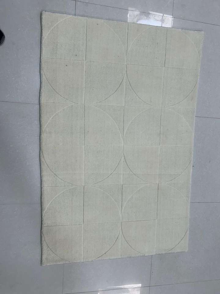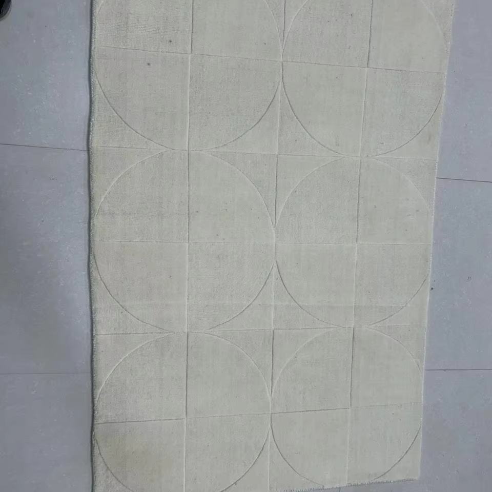 พรมปูพื้นทรงกลมลายครีมสีขาวแบบแอบสแตรกพรมขนนุ่มทำด้วยมือสำหรับห้องนั่งเล่นทำจากผ้าฝ้าย