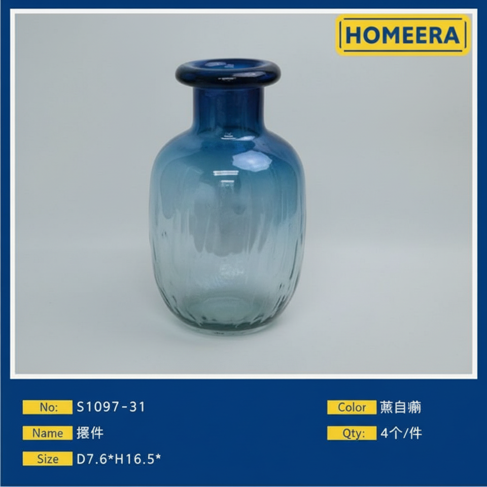 แจกันดอกไม้คริสตัลสีฟ้าไล่ระดับสีสำหรับตกแต่งบ้าน4ชิ้นทำด้วยมือ D78xH165นิ้ว