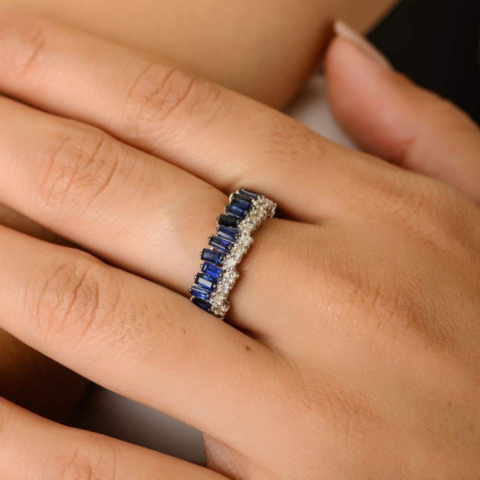 แหวนหมั้นเพชรแซฟไฟร์สีฟ้าธรรมชาติสีฟ้า100% ออกแบบได้ตามต้องการสำหรับงานแต่งงานแหวนหมั้นทำจากทองคำขาว18K