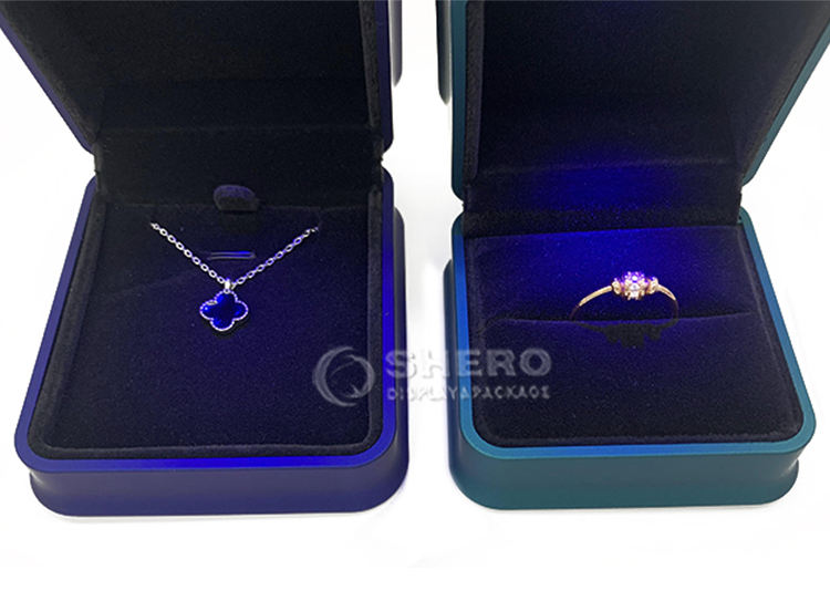 กล่องบรรจุภัณฑ์แหวนเพชรแบบมีไฟ LED ระดับไฮเอนด์ สั่งทำโลโก้ได้ สำหรับขายส่ง