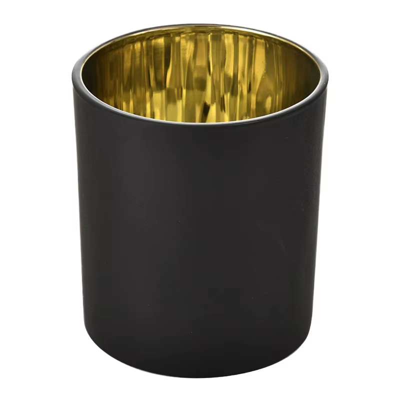 เชิงเทียนแก้วทรงกระบอกเคลือบทองดำแบบทำมือ หรูหรา เป็นมิตรกับสิ่งแวดล้อม ทนความร้อน สำหรับคริสต์มาส ขายส่ง