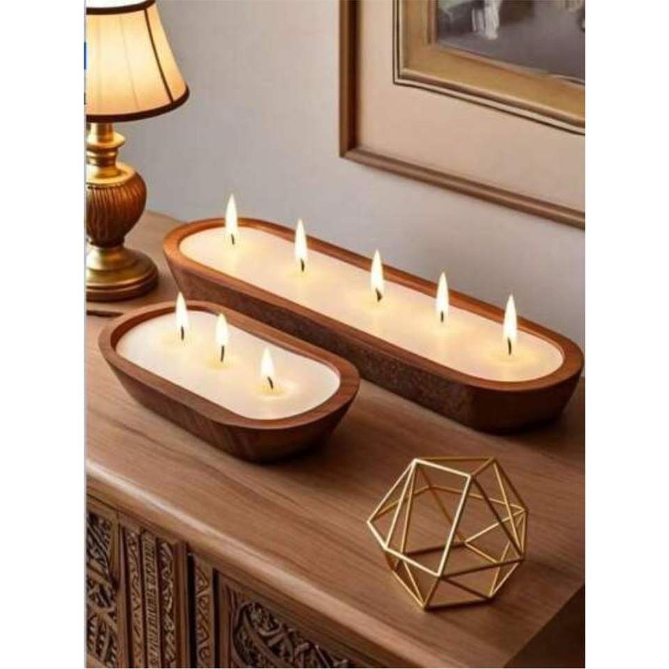 เทียนหอมถั่วเหลือง 3 ไส้ พร้อมพู่ห้อยตกแต่ง กลิ่นหอมสำหรับบ้าน ดีไซน์หรูหราสไตล์ฟาร์มเฮาส์ บรรจุในโถไม้ ขายส่ง