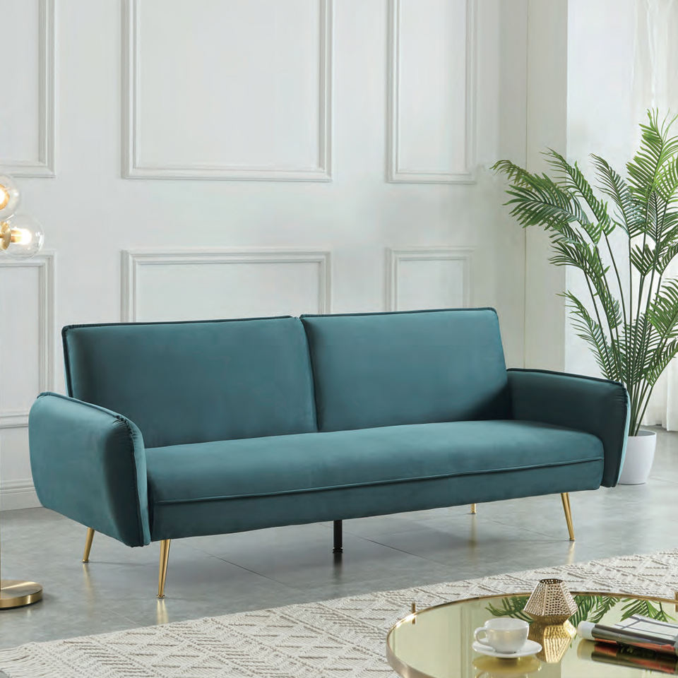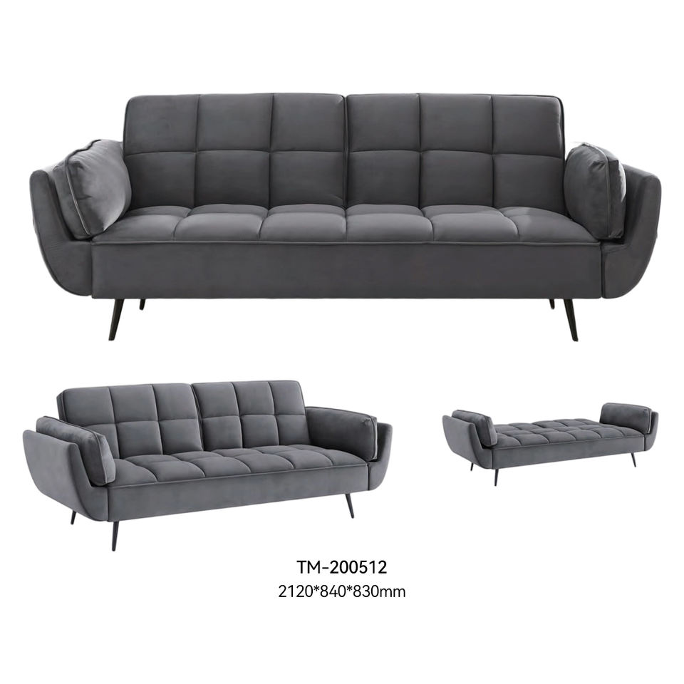 โซฟาเบดหรูหราแบบขายส่ง เฟอร์นิเจอร์ห้องนั่งเล่นที่สะดวกสบาย โซฟาผ้า 3 ที่นั่ง พับได้ ขาโลหะ