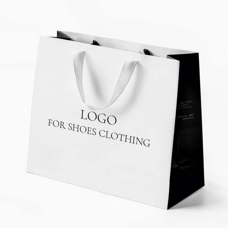 ถุงกระดาษคราฟท์พิมพ์ลายหรูหราสำหรับขายส่ง พร้อมหูหิ้ว รีไซเคิลได้ สำหรับร้านค้าปลีกเสื้อผ้า แบรนด์เสื้อผ้า โลโก้สั่งทำได้ ถุงบรรจุภัณฑ์สำหรับช้อปปิ้ง