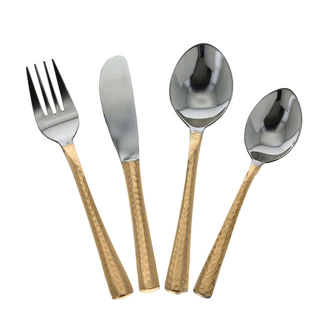 ช้อนมีดสแตนเลสส้อมช้อนทองสำหรับโรงแรมและงานแต่งงานด้ามจับทำจากทองเหลือง