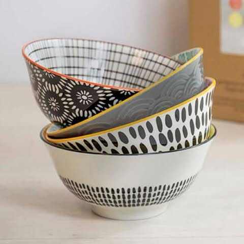ชามเซรามิกเคลือบเพื่อสุขภาพสีสันสวยงามพิมพ์สีแบบกำหนดเองได้สไตล์ญี่ปุ่นเป็นมิตรต่อสิ่งแวดล้อม