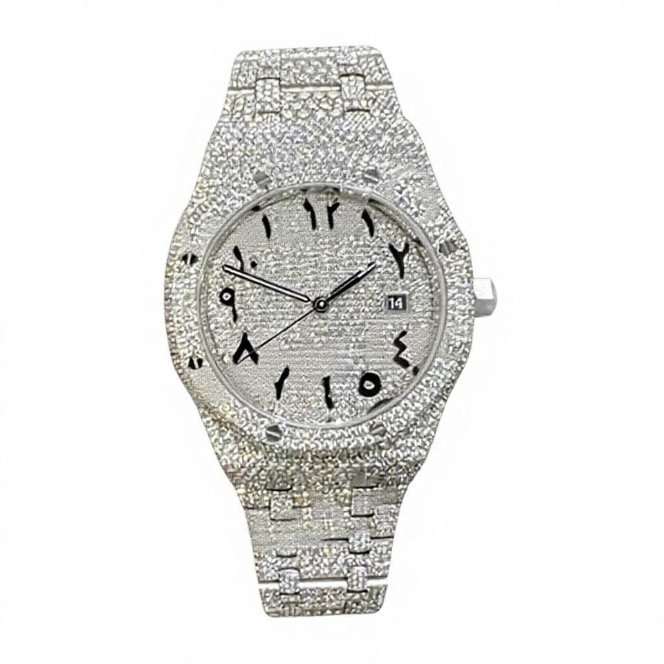 Wholesale Luxury Iced Sport Wristwatch for Men Women Automatic Mechanical Movement Stainless Steel Moissanite Case 10 Bar Water