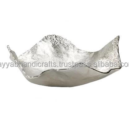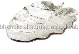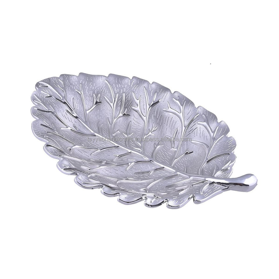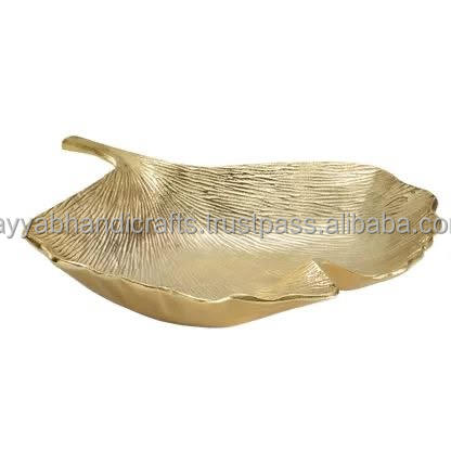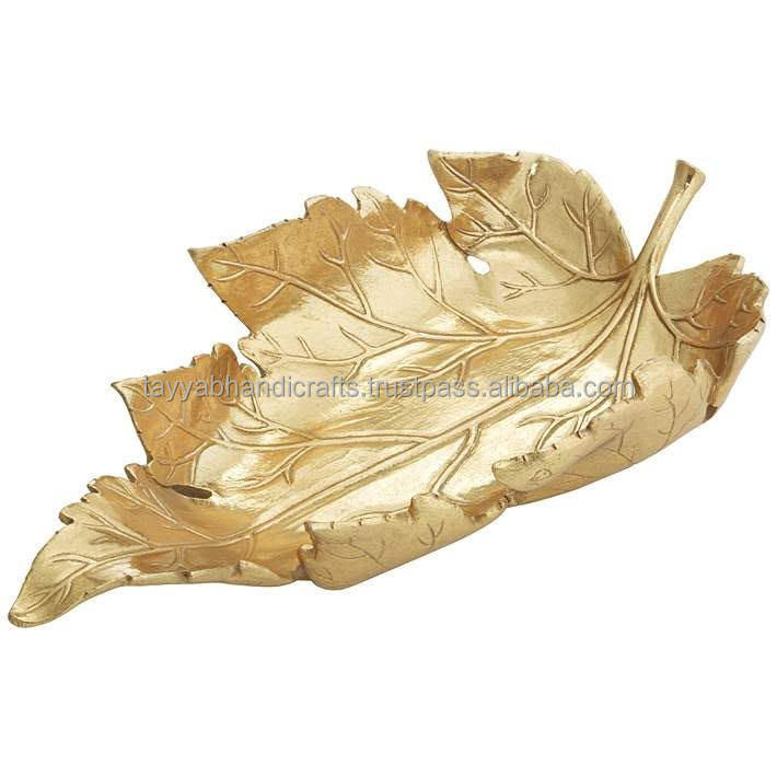 ถาดโลหะตกแต่งรูปใบไม้หรูหราถาดเสิร์ฟของตกแต่งบ้านตกแต่งด้วยทองคำจากอินเดีย