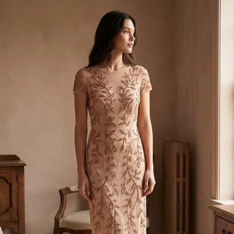 ชุดราตรีแขนยาวหรูหราขายส่ง ประดับด้วยลูกปัดและเลื่อมอย่างหนัก ชุดออกงานพรอมสั่งตัดได้ ปักลายสีเงินอย่างสง่างาม เหมาะสำหรับงานเลี้ยงอย่างเป็นทางการ