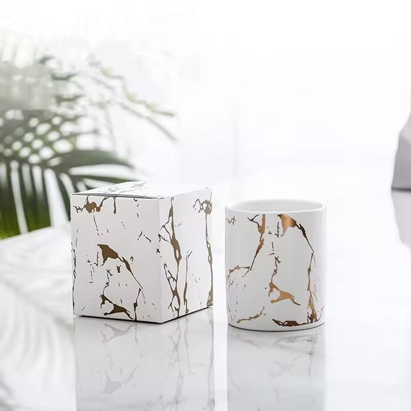 เทียนหอมถั่วเหลืองเซรามิกหินอ่อนหรูหราขายส่ง พร้อมกลิ่นหอมแบบกำหนดเองและโลโก้ สำหรับตกแต่งบ้านและเป็นของขวัญ