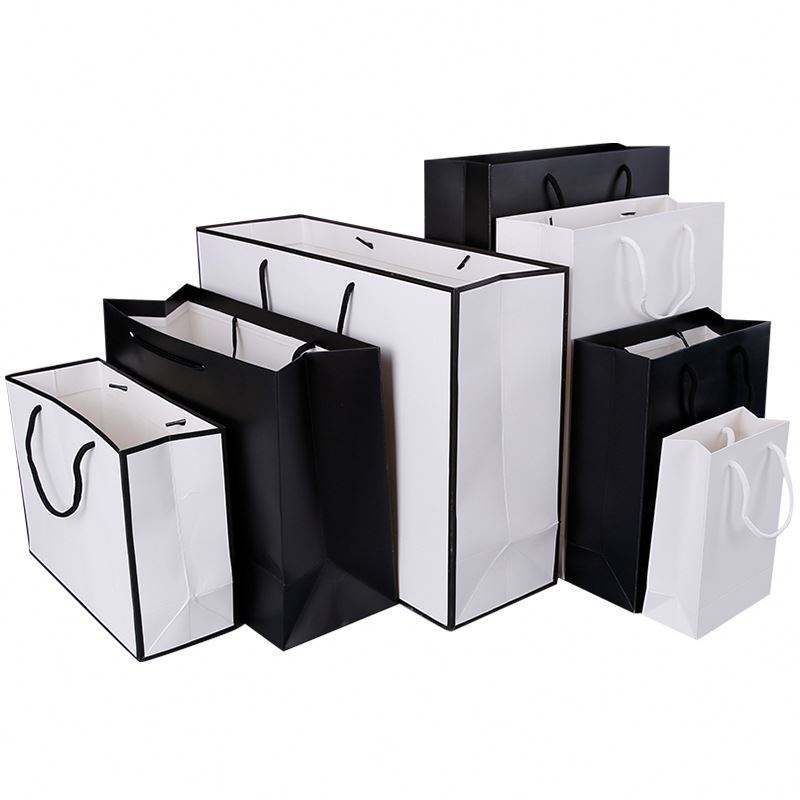 ถุงกระดาษช้อปปิ้งสีดำด้านหรูหราสำหรับขายส่ง พร้อมโลโก้ สำหรับบรรจุภัณฑ์เสื้อผ้าแบบกำหนดเอง