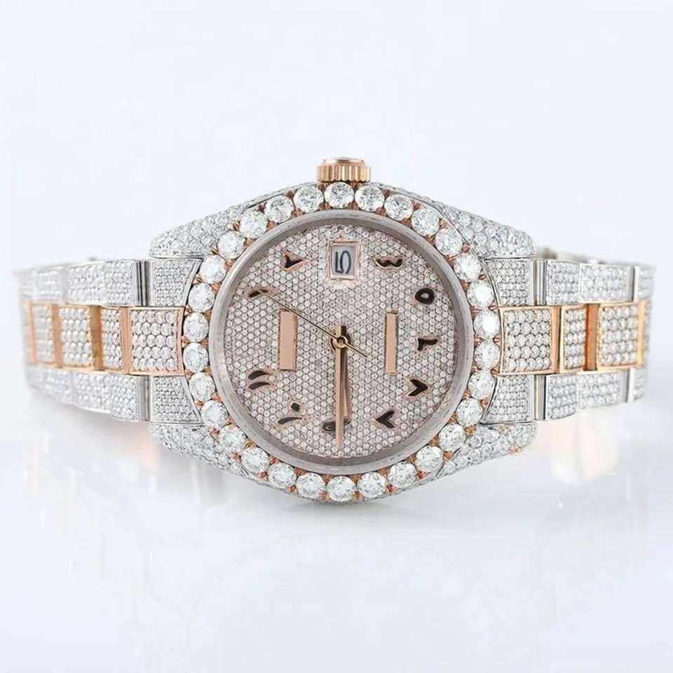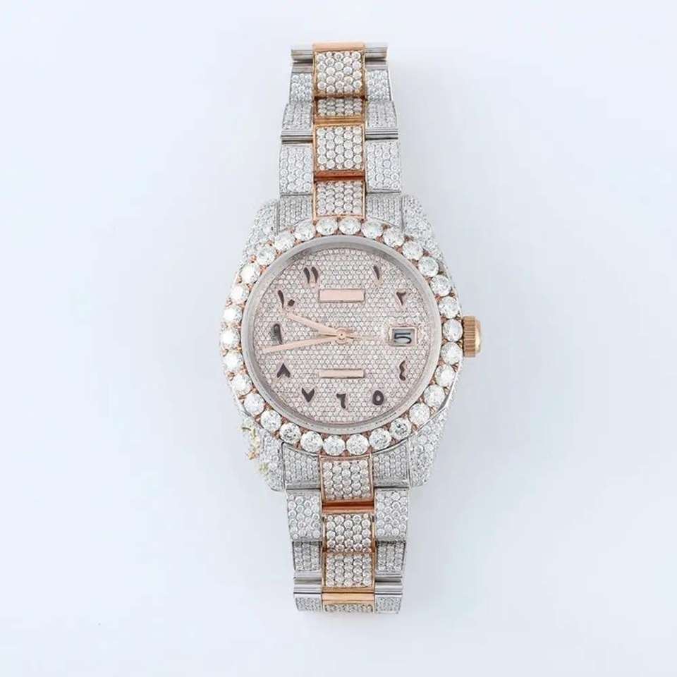 นาฬิกาข้อมือโครงกระดูกแบบซ่อนเพชรโมอิสซาไนต์หรูหรา ขายส่ง ตัวเรือนสแตนเลส สายหนัง กันน้ำ