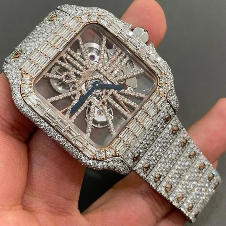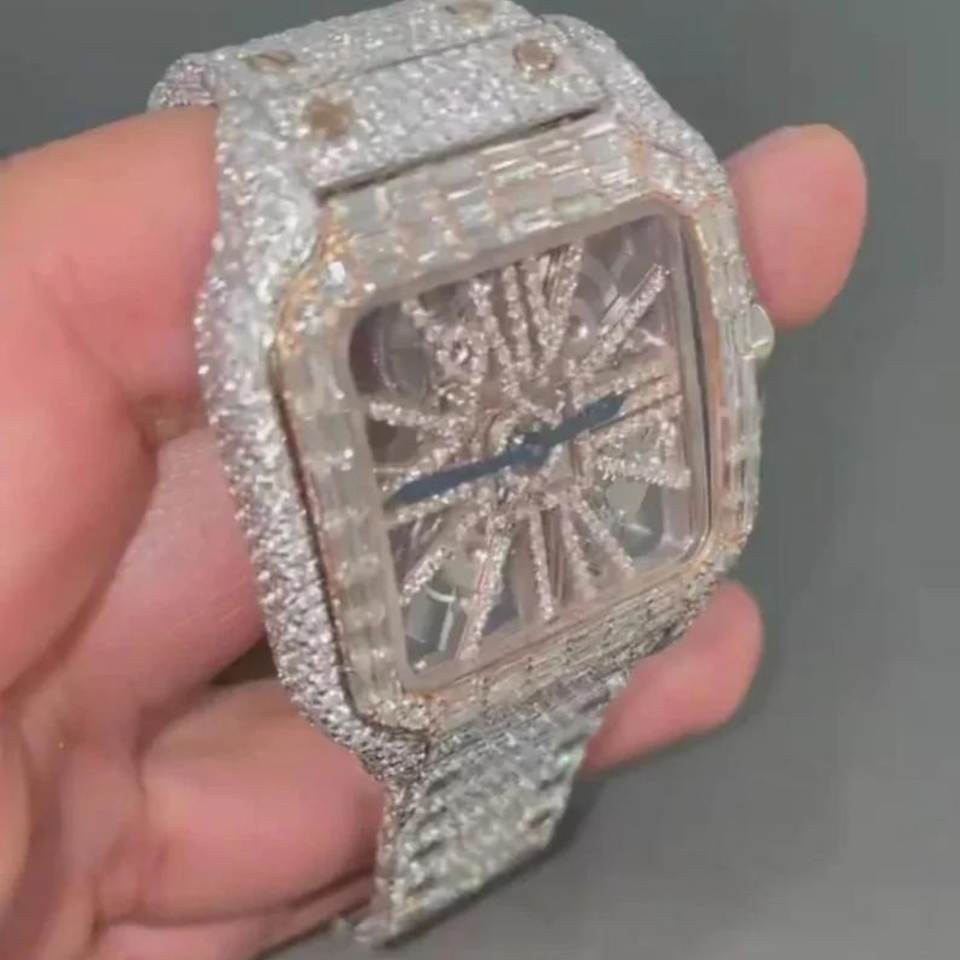 ชื่อผลิตภัณฑ์:นาฬิกา Moissanite VVS ประดับเพชร, ผ่านการทดสอบเพชร