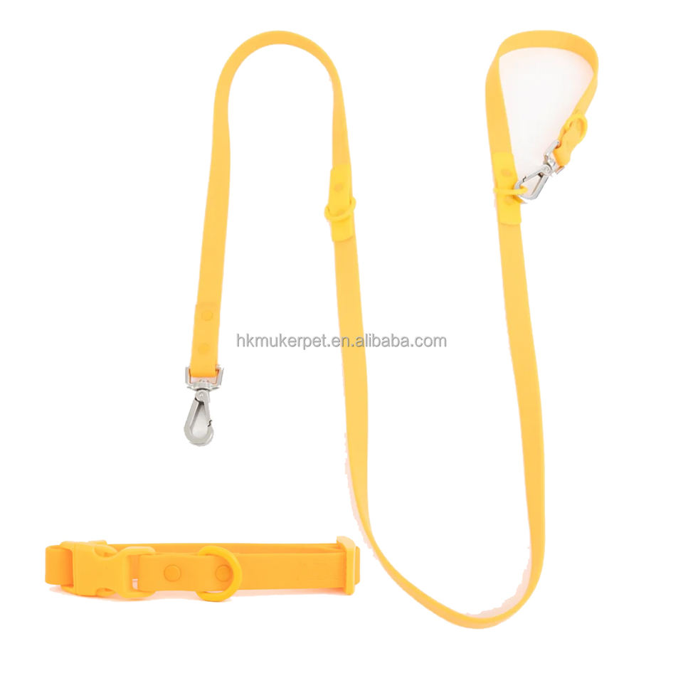 สายจูงสุนัขเคลือบพีวีซีหรูหราปรับได้การฝึกหนักทนทานแยกคอแฟชั่นแบบเรียบง่ายหมุดย้ำสำหรับสัตว์เลี้ยง