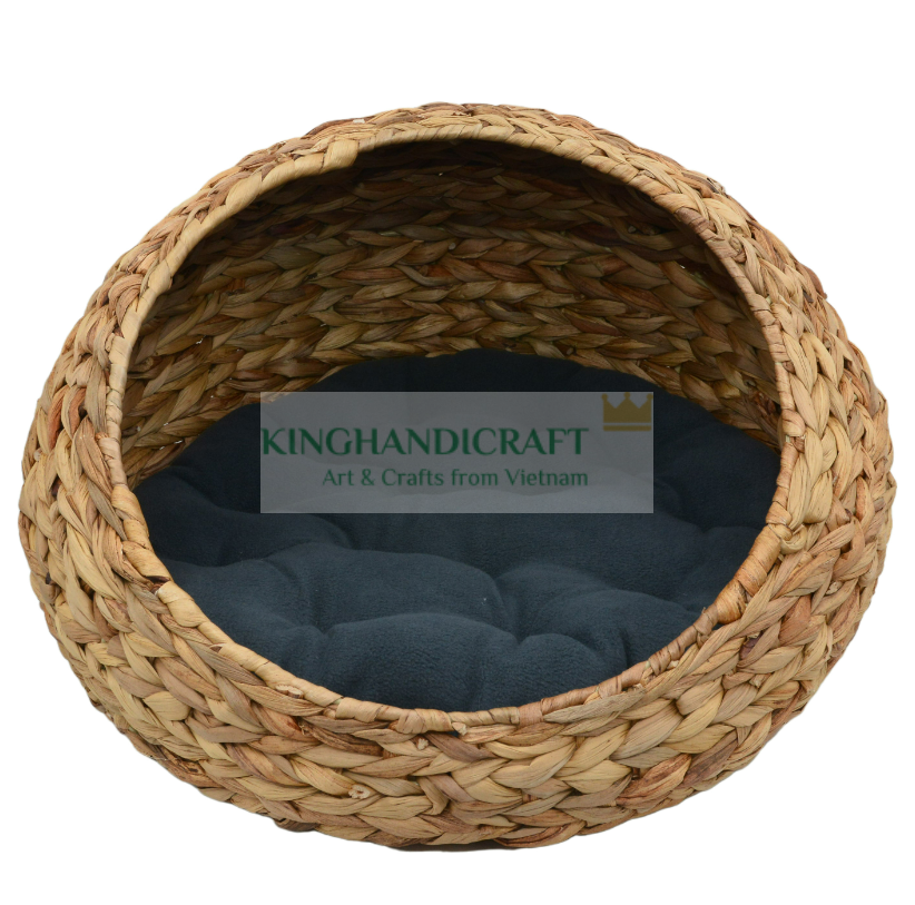 เตียงสัตว์เลี้ยงผ้ากำมะหยี่แบบหรูหราผ้าทอมือน้ำธรรมชาติผักตบชวารูปทรงหยดน้ำมีคุณสมบัติในการระบายความร้อนแบบเส้นใยตรงจากเวียดนาม