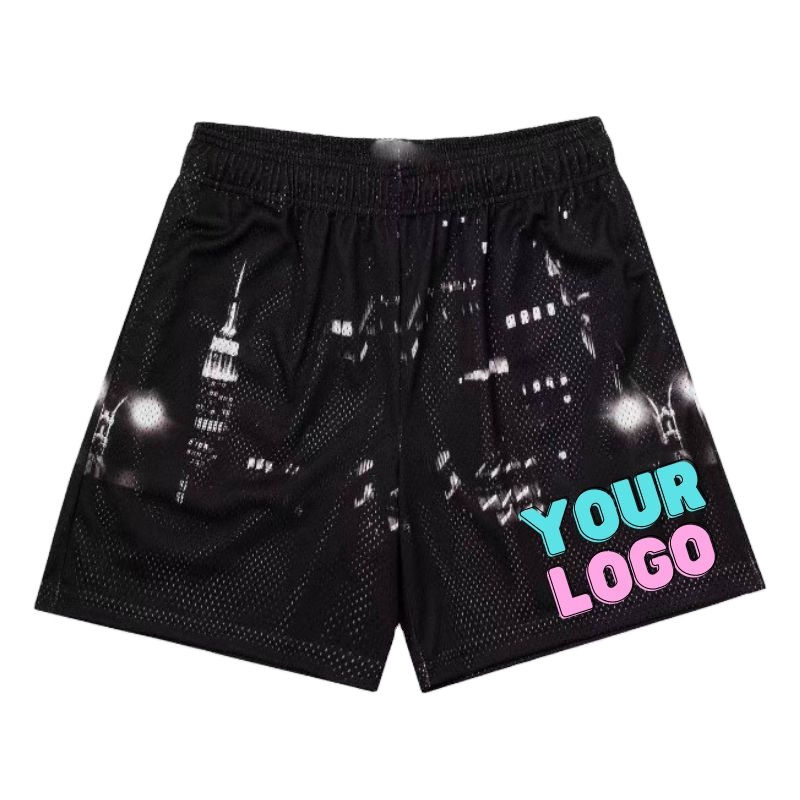 กางเกงขาสั้นกีฬาขาสั้นของผู้ชายผ้าโพลีเอสเตอร์100% กันน้ำกันรอยยับระบายอากาศพิมพ์ลายกลางแจ้ง