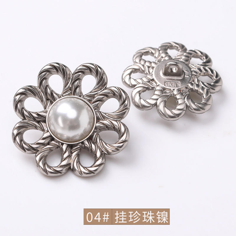 กระดุมก้านประดับเพชรสำหรับผู้หญิงกระดุมโลหะประดับมุกสไตล์แฟชั่น
