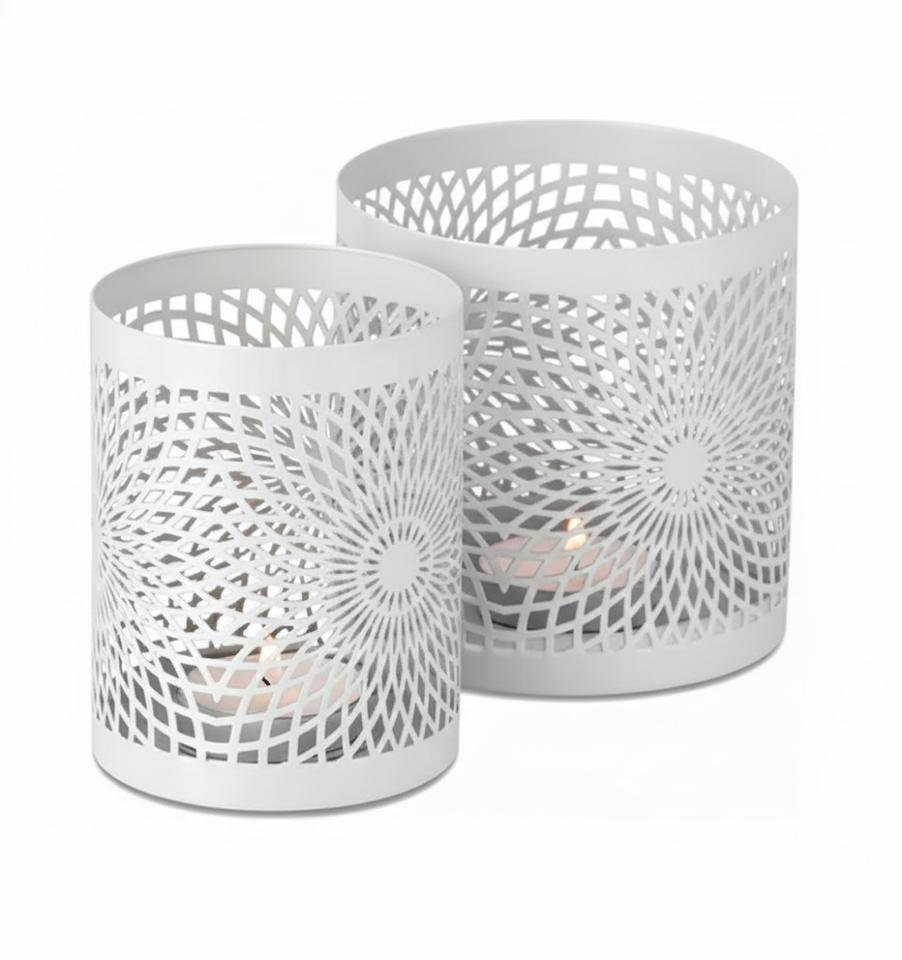 ชุดเชิงเทียนทรงกระบอกโลหะสีขาวหรูหราสำหรับขายส่ง จำนวน 2 ชิ้น เชิงเทียนเหล็กตกแต่งสำหรับตกแต่งบ้าน