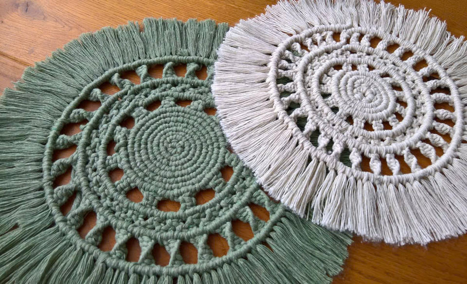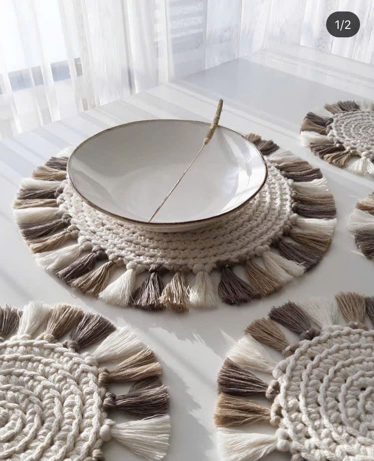 แผ่นรองจานมาคราเม่จากหญ้าทะเล ทนความร้อน เป็นมิตรกับสิ่งแวดล้อม สำหรับงานปาร์ตี้ ดีไซน์สวยงาม ใช้ได้ทั้งในร่ม/กลางแจ้ง ราคาถูก ขายส่ง