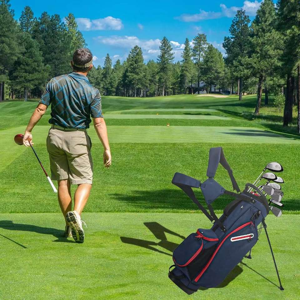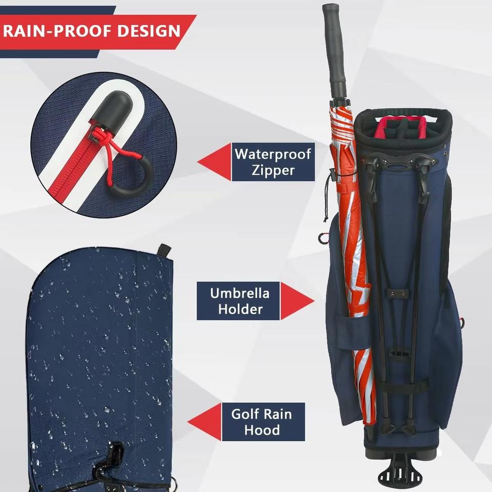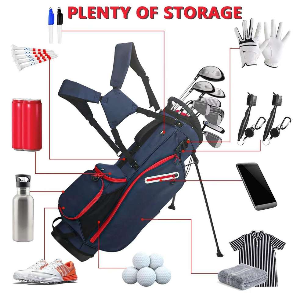 กระเป๋ากอล์ฟแบบมีขาตั้งยี่ห้อ MATRIX รุ่นไนลอน 14 ช่อง ปิดด้วยซิป ปักโลโก้ตามสั่ง พร้อมช่องใส่ไม้กอล์ฟและลูกกอล์ฟ ใช้ได้กับรถกอล์ฟ