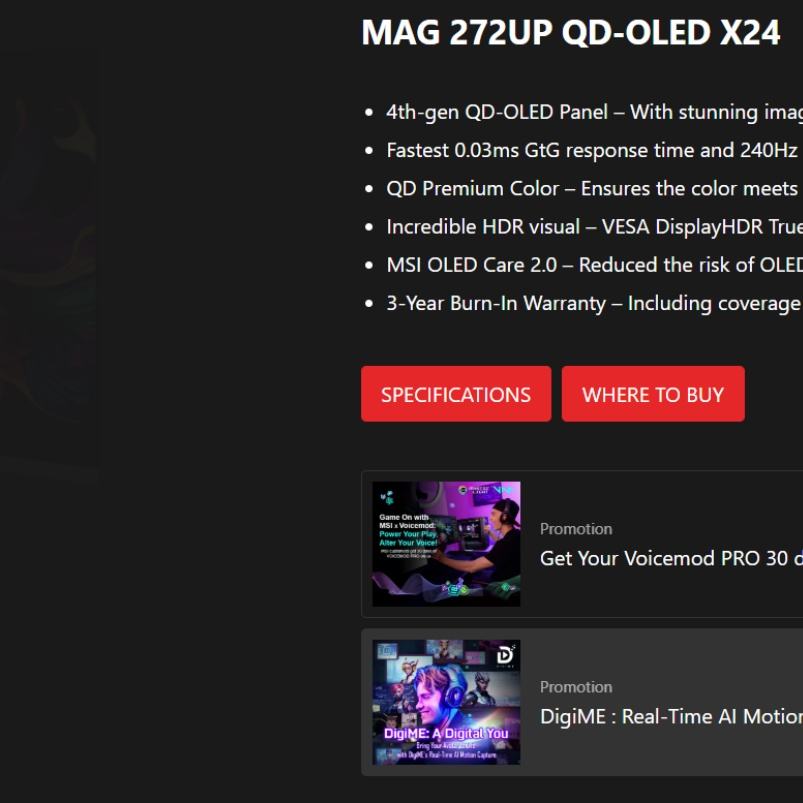 จอมอนิเตอร์สำหรับเล่นเกม MSI QD-OLED 272UP X24