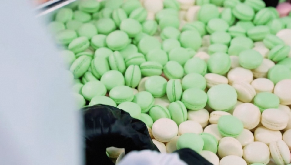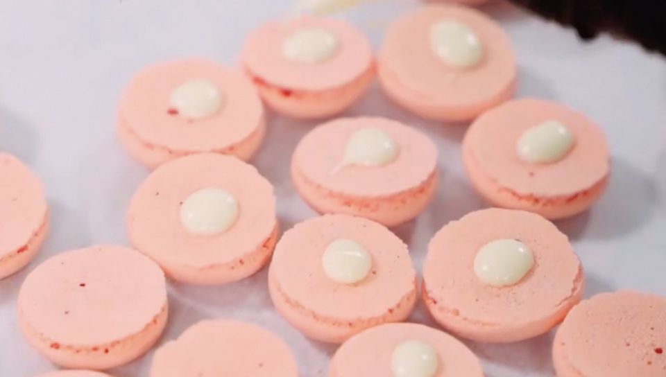 เนื้อสัมผัสแบบครึ่งนุ่ม: เนื้อสัมผัสแบบครึ่งนุ่มทำให้มีความรู้สึกในปากที่น่าพอใจ ทำให้มาการองอร่อยมากขึ้นในการรับประทาน