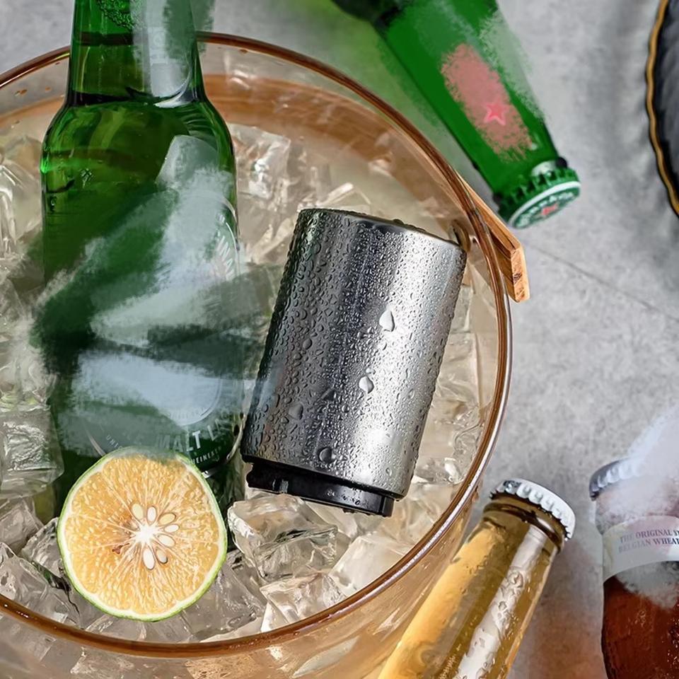 Wholesale Magnetic Stainless Steel Kitchen Bar Gadget Portable Automatic Beer Bottle Press Lid Corkscrew for Wine