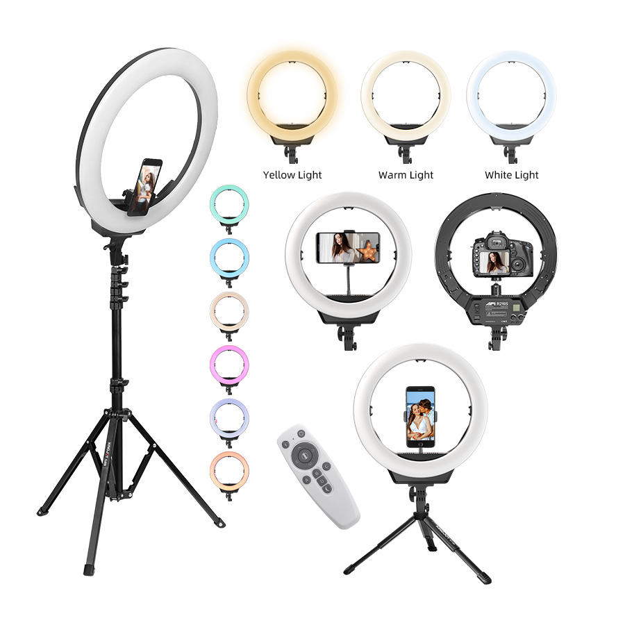 ไฟวงแหวน LED สำหรับแต่งหน้าแบบขายส่ง พกพาสะดวก พร้อมขาตั้งกล้องแบบมืออาชีพ 3 โหมดแสงสำหรับการถ่ายภาพ