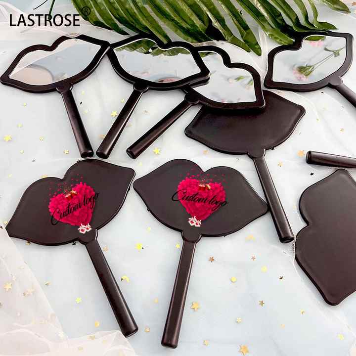 กระจกแต่งหน้าขายส่ง รุ่น Kiss Style พร้อมด้ามจับ สามารถใส่โลโก้ได้ รูปทรงริมฝีปาก สำหรับสาวๆ ใช้แต่งหน้า