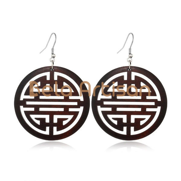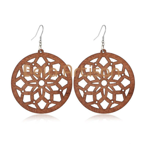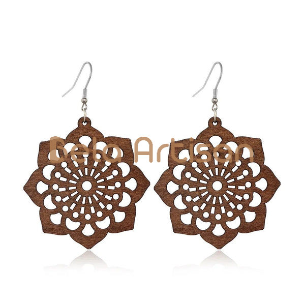 ขายส่งต่างหูไม้แมนดาลาต่างหูทำด้วยมือน้ำหนักเบาสำหรับผู้ค้าปลีกและส่งออก