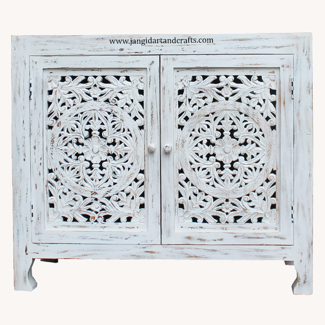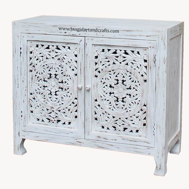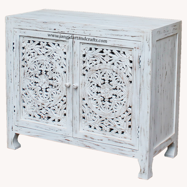 ขายส่งมะม่วงไม้ตู้เก็บของแข็งไม้สองประตูหนึ่งชั้นภายในแกะสลักโทรมเก๋สีขาวธรรมชาติบุฟเฟ่ต์ตู้ข้าง