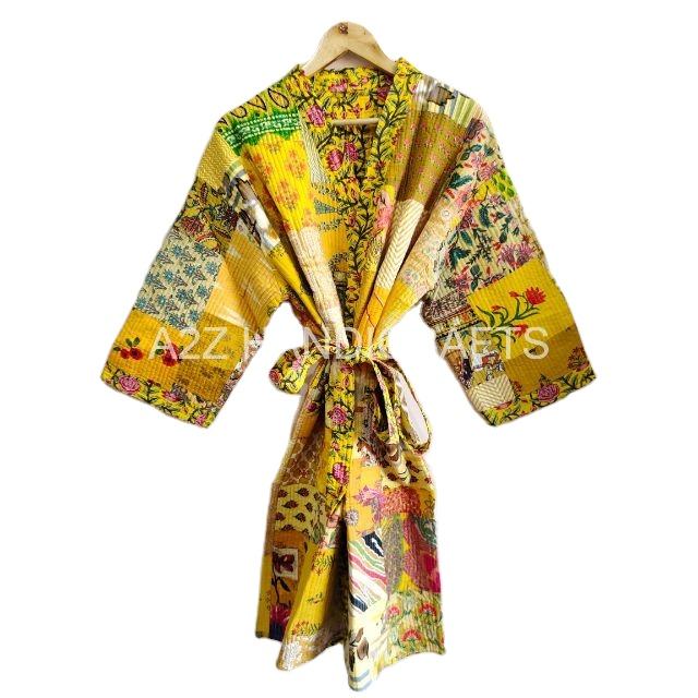 ชุดคลุมผ้าฝ้ายสำหรับเพื่อนเจ้าสาว ผลิตขายส่ง เสื้อผ้าผู้หญิง งานแฮนด์เมด คิโมโนเย็บต่อผ้า ลายปะติดปะต่อ ผ้าทอระบายอากาศสำหรับฤดูร้อน