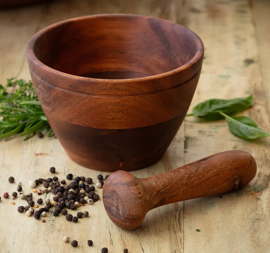 เครื่องบดเครื่องเทศครกและสากสมุนไพรและเครื่องเทศทำด้วยมือทำจากไม้