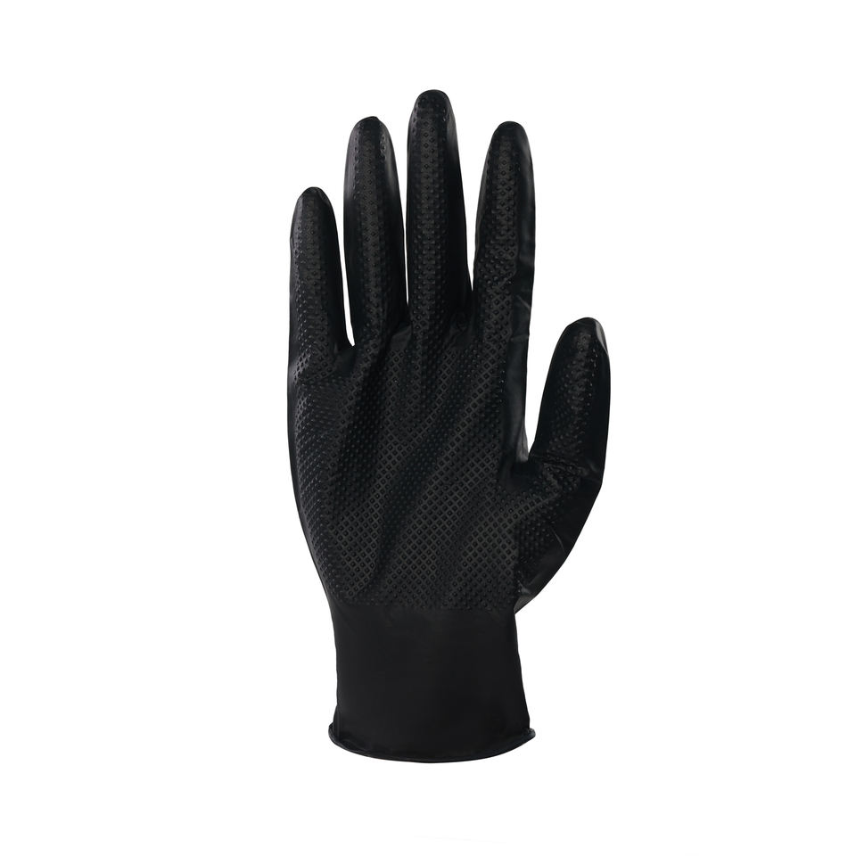 ผู้ผลิตขายส่งถุงมือไนไตรล์สีดำกันลื่นแบบใช้แล้วทิ้งสำหรับการตรวจโรค