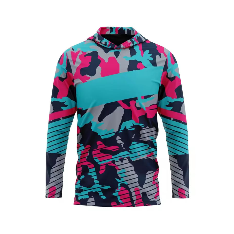 เสื้อฮู้ดสำหรับตกปลาแขนยาวมีฮู้ดผ้าโพลีเอสเตอร์ระบายอากาศได้ดี100% ออกแบบได้ตามต้องการ