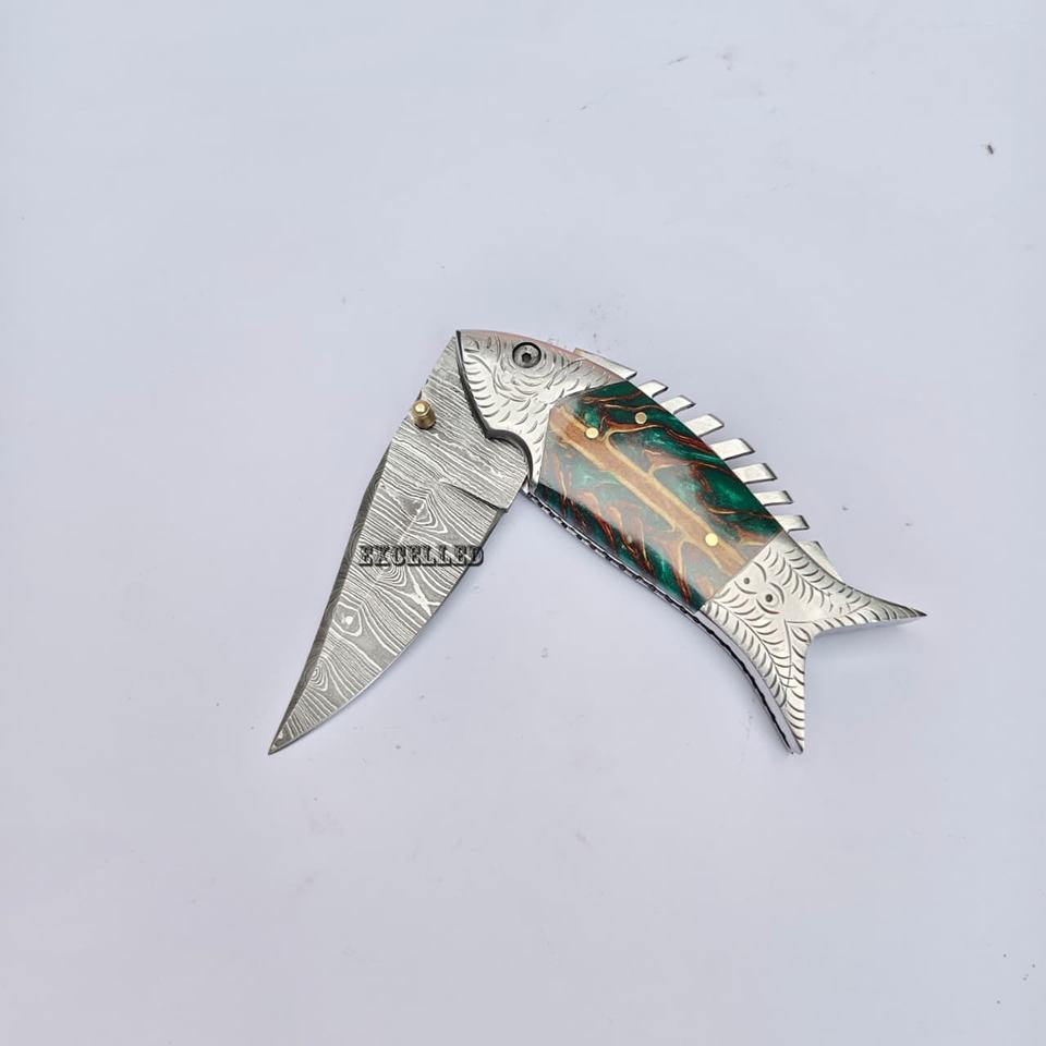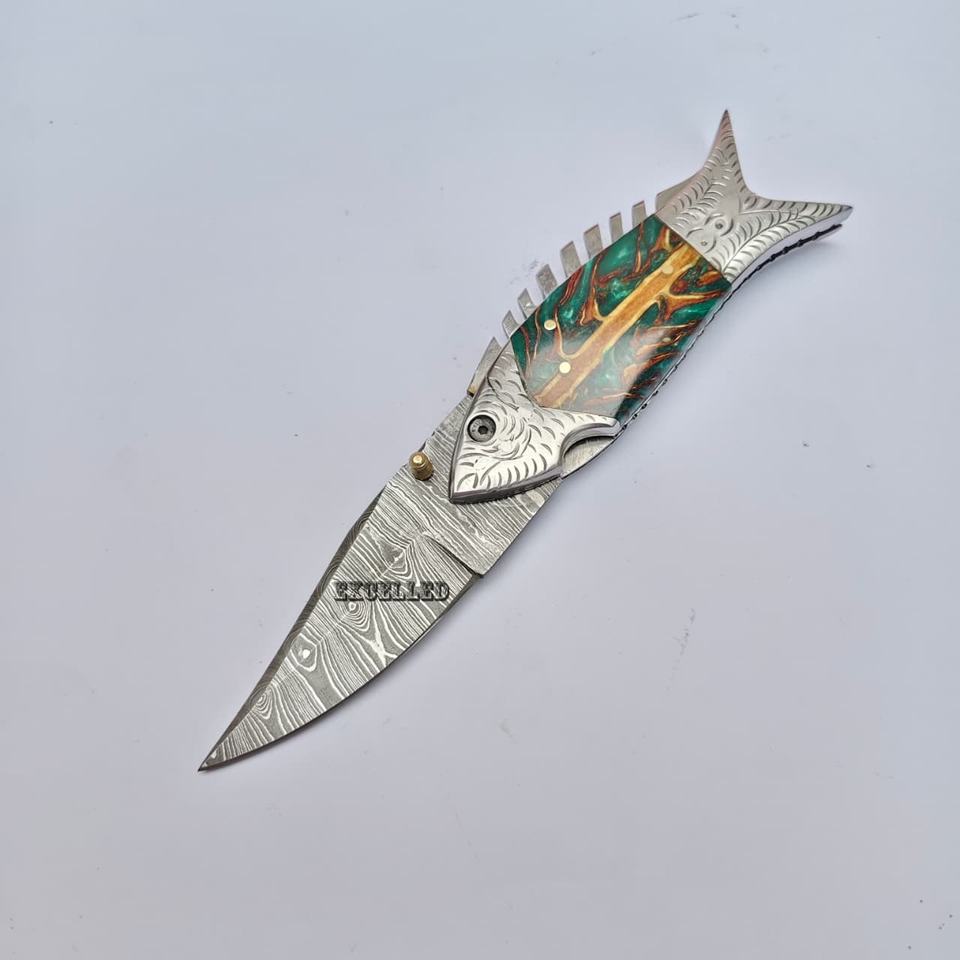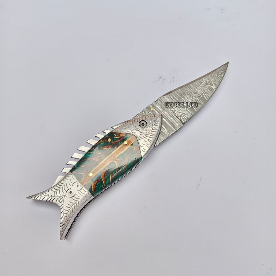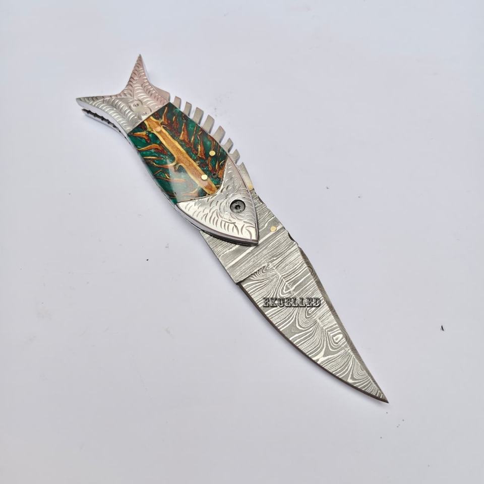 มีดพับเหล็กดามัสกัสแบบทนทานมีด EDC สำหรับตั้งแคมป์กลางแจ้งด้ามจับเข็ม