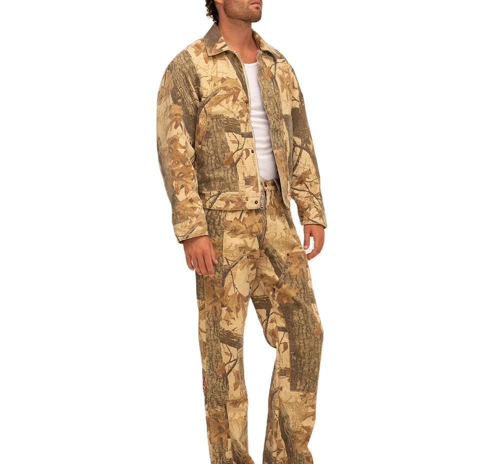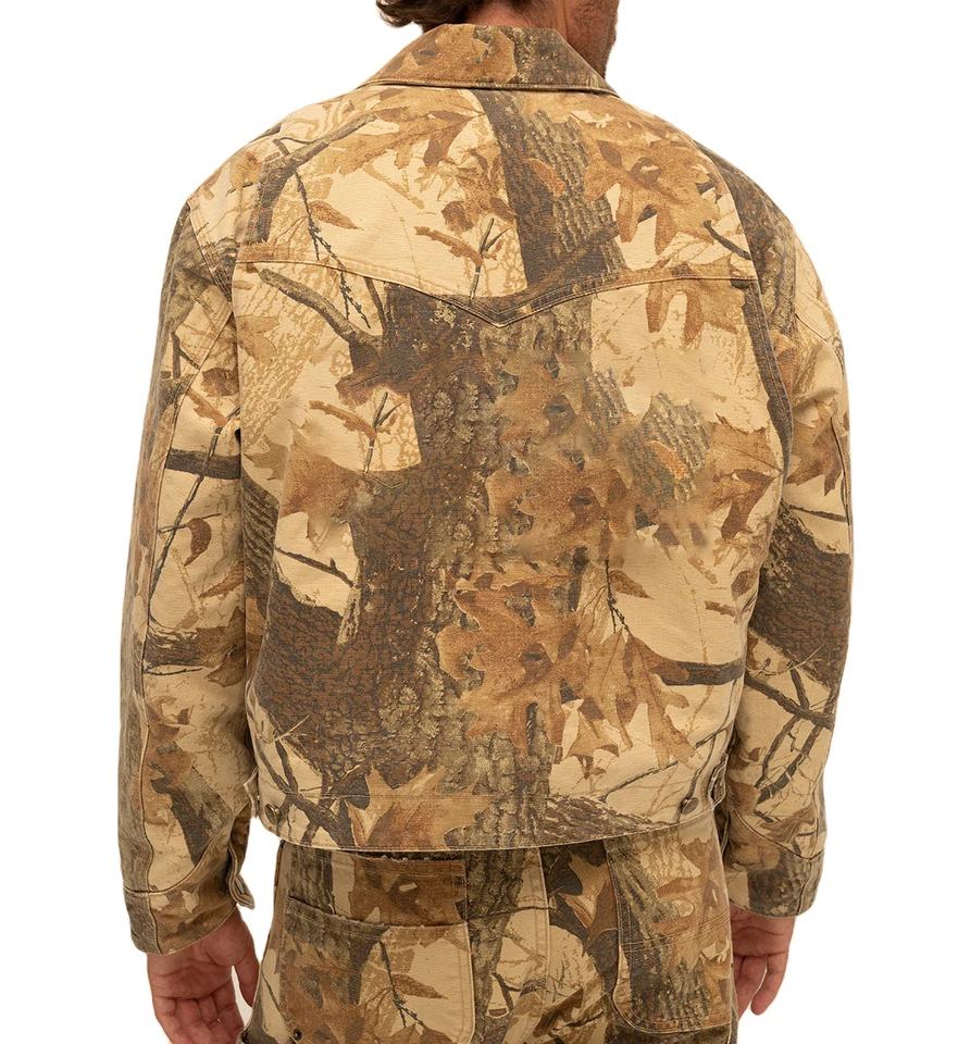 เสื้อแจ็กเก็ตใส่ทำงานสำหรับผู้ชายกางเกงยีนส์วินเทจสำหรับช่างไม้ดีทรอยต์ผ้าใบ
