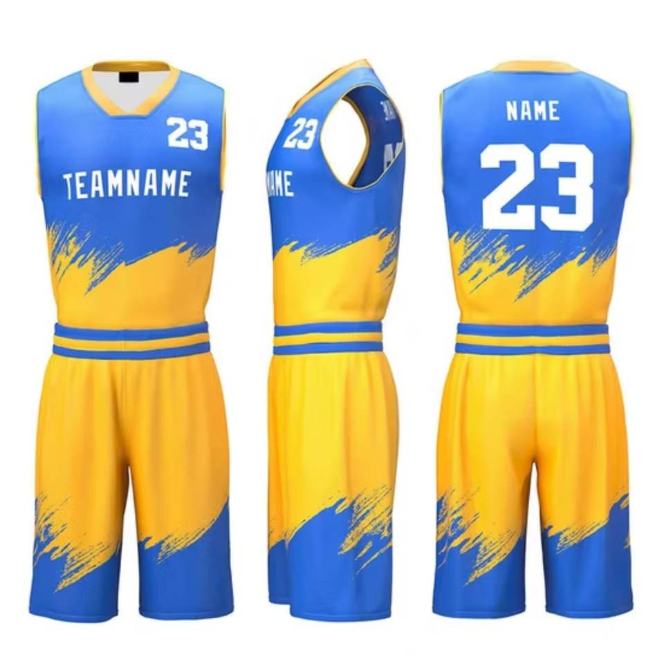 เสื้อบาสเก็ตบอลพิมพ์ซับลิเมชันและชุดบาสเก็ตบอลแบบสั้นสำหรับทีมและหมายเลขชื่อผู้เล่น