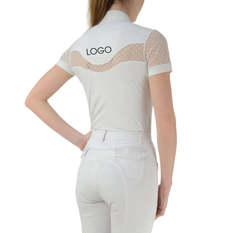 ผู้ผลิตเสื้อผ้าขี่ม้าแบบขายส่ง รับผลิตตามแบบ เสื้อผ้าระบายอากาศดี สำหรับการแข่งขันและการแสดง สำหรับผู้หญิง แขนสั้น