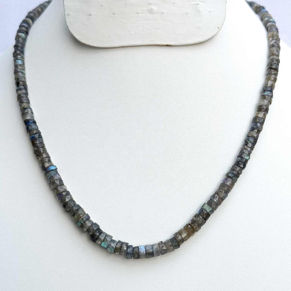 สร้อยคอหินอัญมณีลูกปัดเจียระไนแบบเหลี่ยมเพชรพลอยจากลาบราดอไรต์ธรรมชาติ