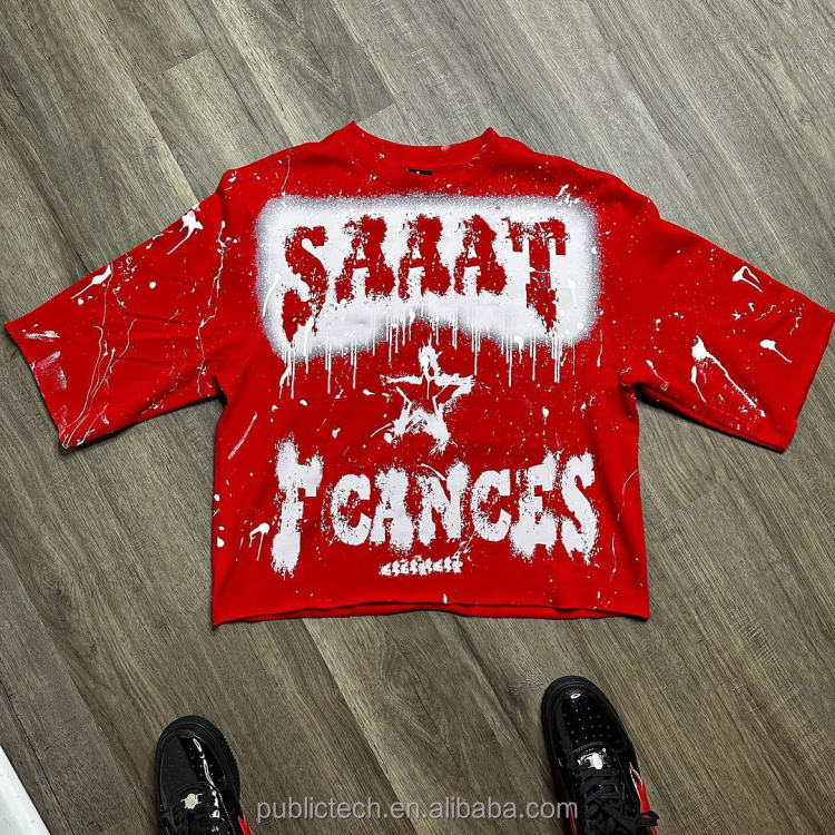 เสื้อยืดฮิปฮอปผ้าฝ้าย GSM 250สำหรับผู้ชายเสื้อยืดพิมพ์ลายสตรีทแวร์ออกแบบได้ตามต้องการ