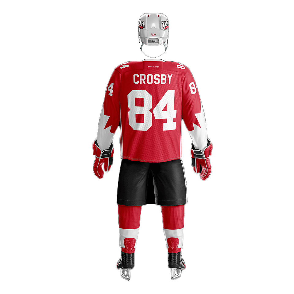 ผู้ผลิตชุดฮอกกี้น้ำแข็งขายส่งสำหรับผู้ชาย น้ำหนักเบา แห้งเร็ว ระบายเหงื่อได้ดี ผลิตจากโพลีเอสเตอร์ 100% รับสกรีนโลโก้