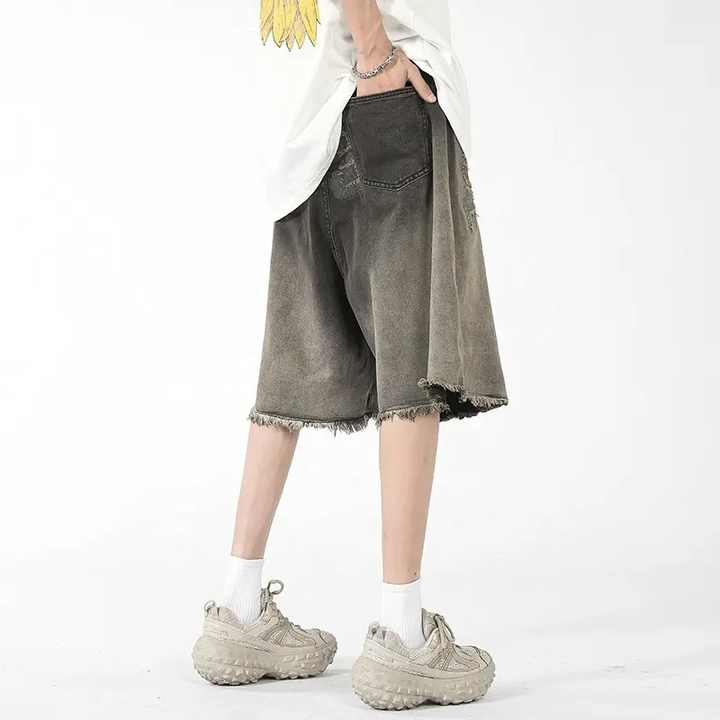 กางเกงขาสั้นผ้ายีนส์ทรงหลวมของผู้ชายผ้าฝ้าย100% แฟชั่นล่าสุด