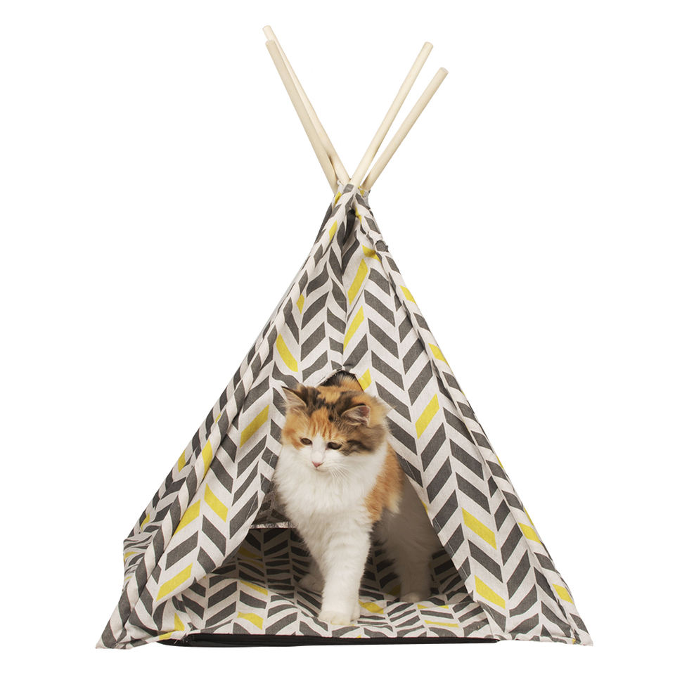 เต็นท์แมวพับได้ห้าแท่งทรงกรวยผ้าลินินดีไซน์ใหม่