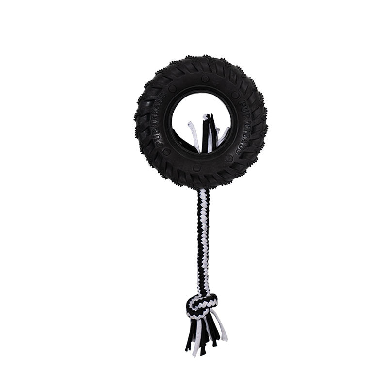 ยางสุนัขสีดำของเล่นพร้อมเชือก