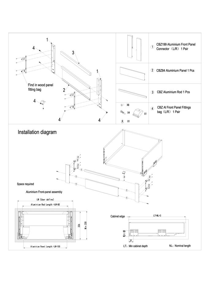 ขยายเต็มรูปแบบ, ติดตั้งง่าย, 3พับ, เงียบ, Soft Closing