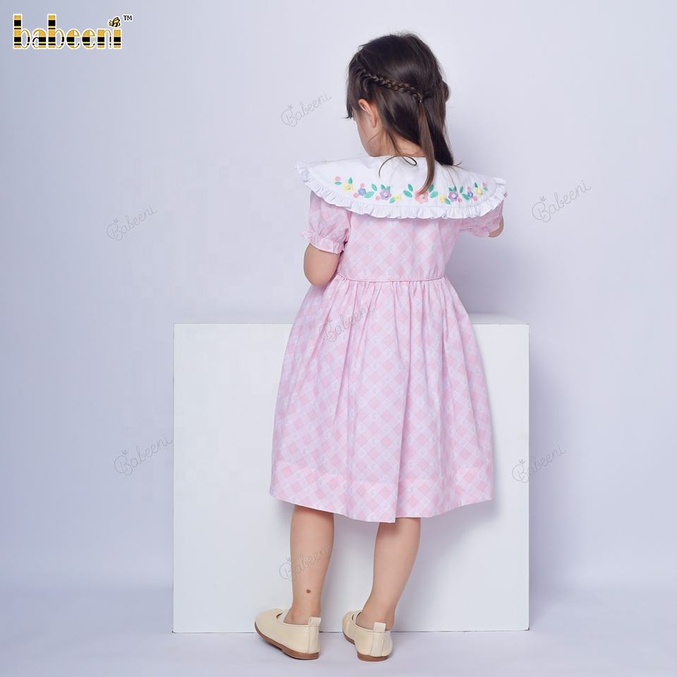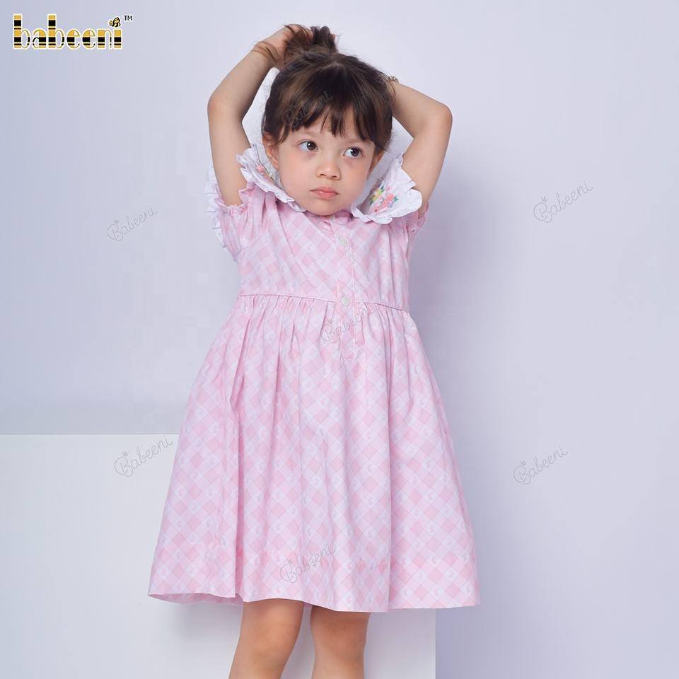 ชุดเดรสเด็กทารกลายจุดปักลาย3D สีชมพูเข้ม Design-DR4133 OEM