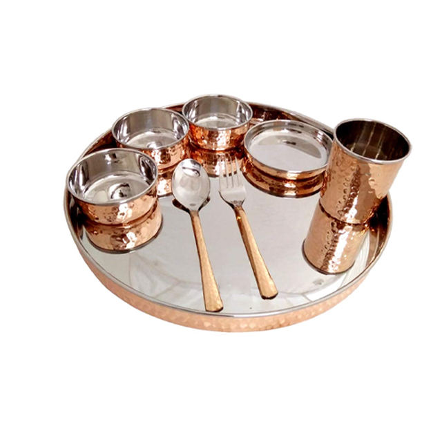 ชุดภาชนะอาหารสแตนเลสทองแดงแบบดั้งเดิม1จานทาลี5ชาม1แก้วและ1ช้อน