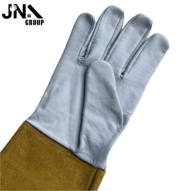 ถุงมือเชื่อมอาร์กอนหนังแพะหนังวัวนิ่มสีขาวสำหรับผู้ชาย
