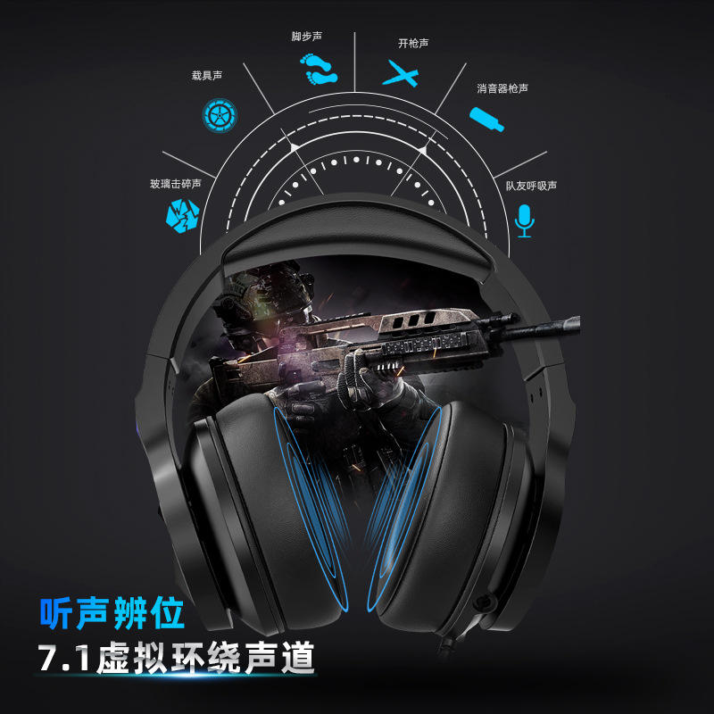 Wholesale Manufacturers' Over-Ear RGB Wired Gaming Headset with Luminous Desktop Notebooks Noise Cancelling Function